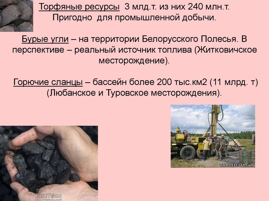 Топливные ресурсы Беларуси : нефть, нефтяные газы, торф, бурыйуголь, горючие сланцы.
