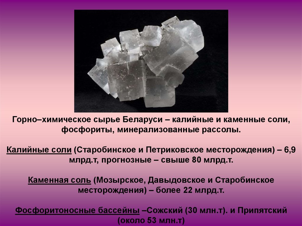 Каменная соль (Мозырское, Давыдовское и Старобинское
