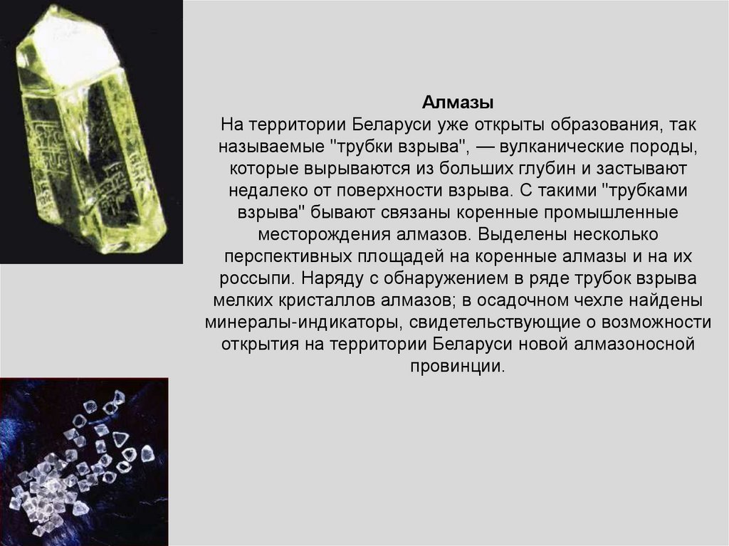мелких кристаллов алмазов; в осадочном чехле найдены