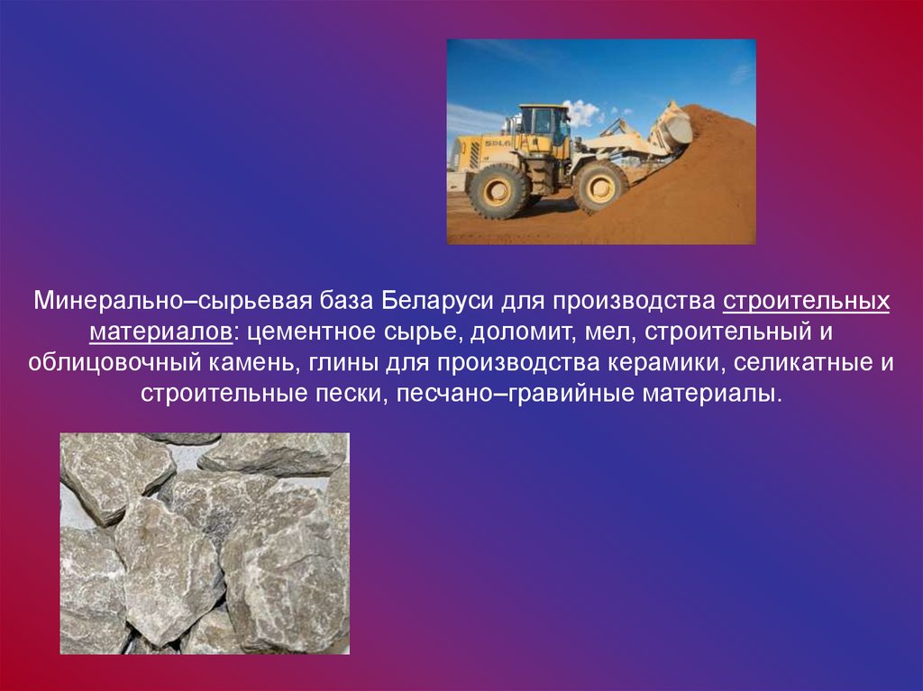 Минерально–сырьевая база Беларуси для производства строительныхматериалов: цементное сырье, доломит, мел, строительный и