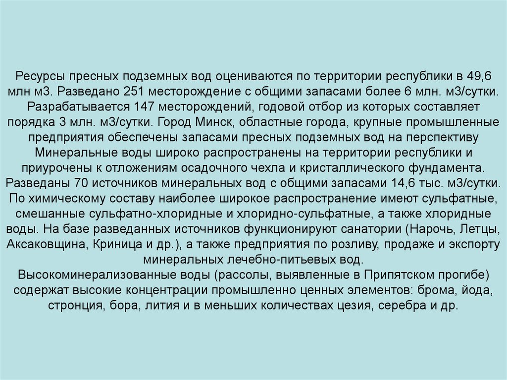 Основные водоносные горизонтыМинеральные подземные воды Беларуси: