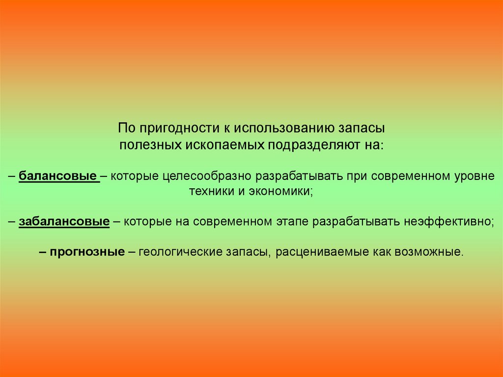 По пригодности к использованию запасыполезных ископаемых подразделяют на: