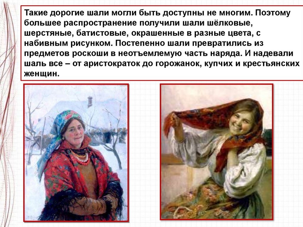 шаль все – от аристократок до горожанок, купчих и крестьянских