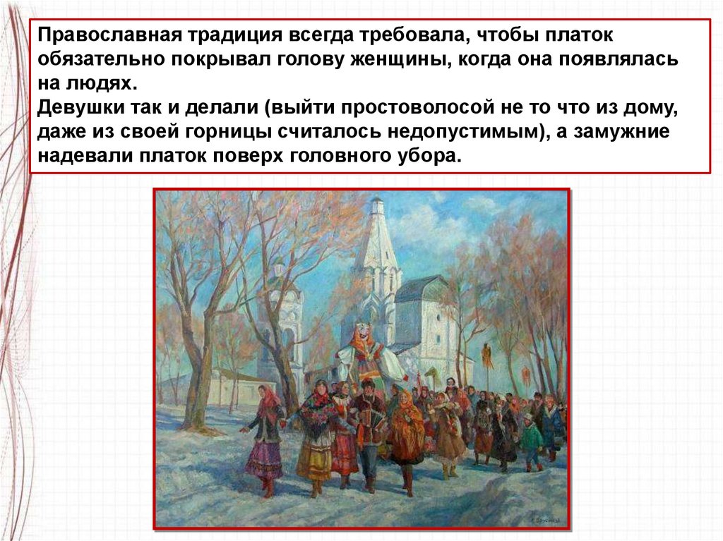 Православная традиция всегда требовала, чтобы платокобязательно покрывал голову женщины, когда она появлялась