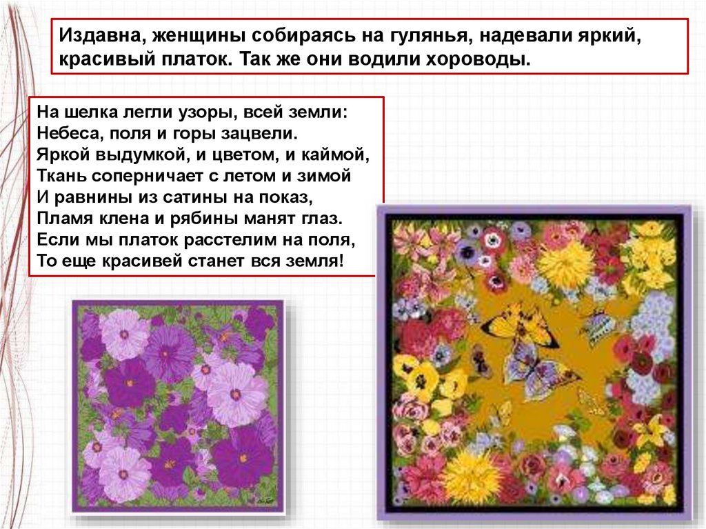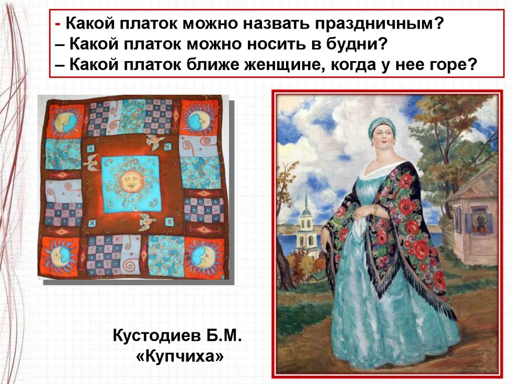 - Какой платок можно назвать праздничным?– Какой платок можно носить в будни?