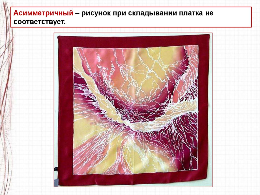 Асимметричный – рисунок при складывании платка несоответствует.