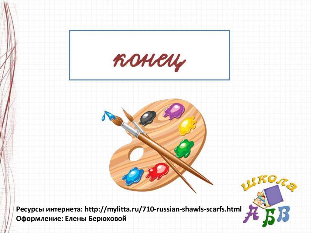 Ресурсы интернета: http://mylitta.ru/710-russian-shawls-scarfs.htmlОформление: Елены Берюховой
