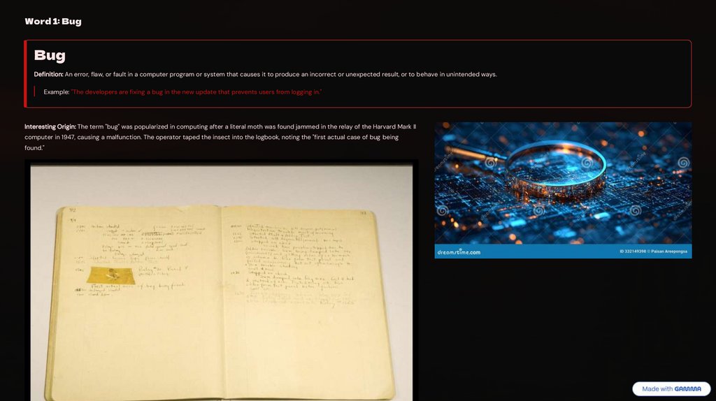 Interesting Origin: The term "bug" was popularized in computing after a literal moth was found jammed in the relay of the Harvard Mark II