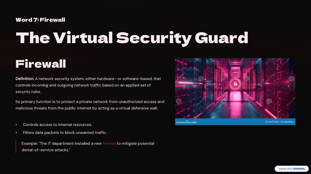 malicious threats from the public internet by acting as a virtual defensive wall.