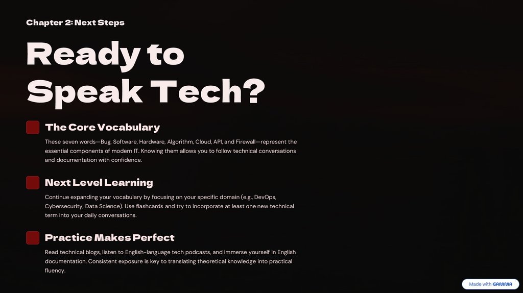 Continue expanding your vocabulary by focusing on your specific domain (e.g., DevOps,