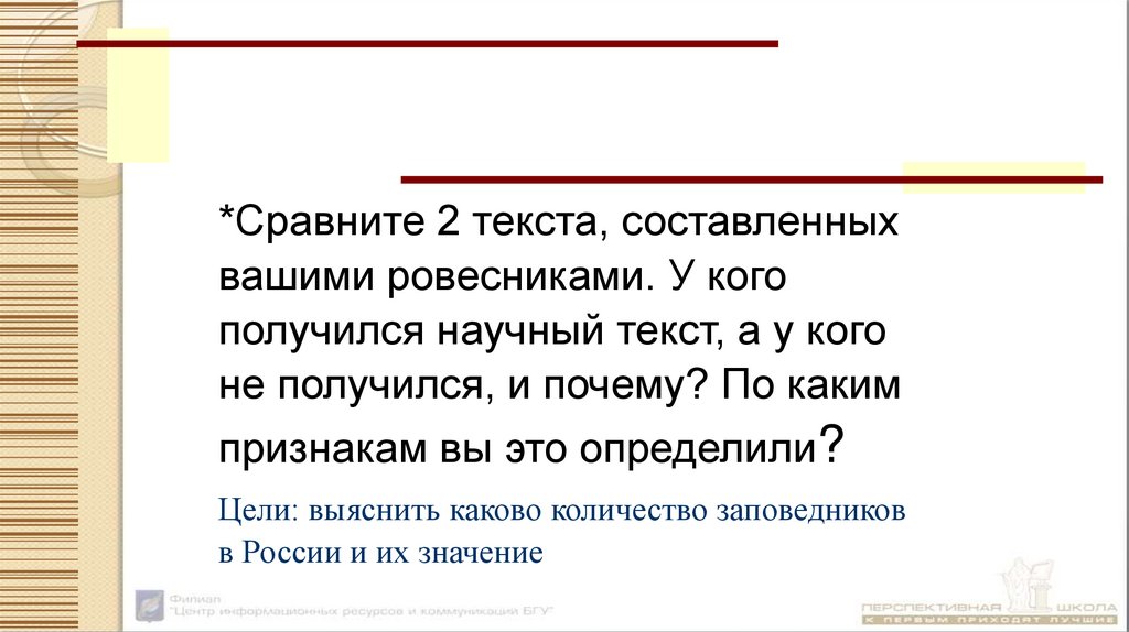 *Сравните 2 текста, составленныхвашими ровесниками. У кого