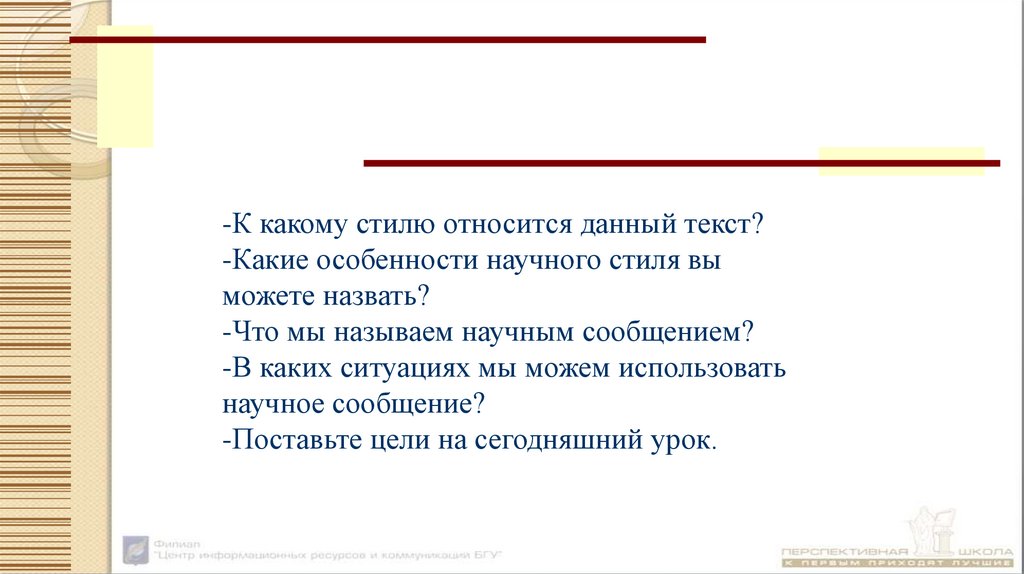 -К какому стилю относится данный текст?-Какие особенности научного стиля вы