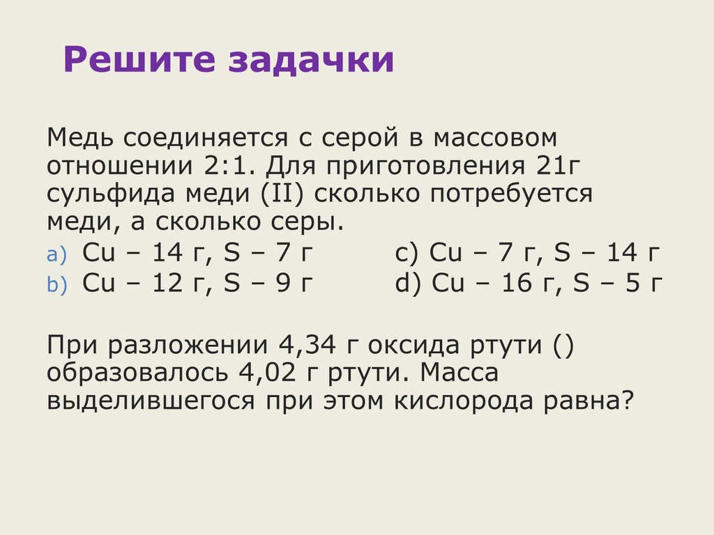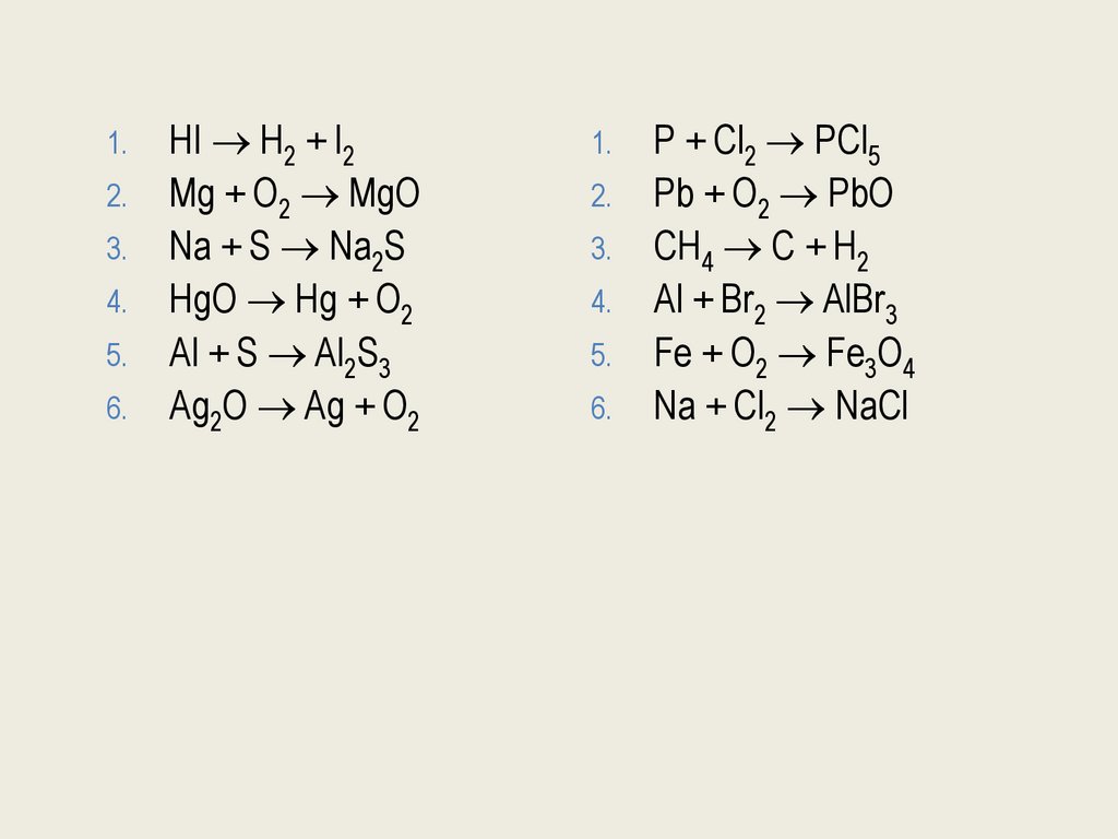 Домашнее заданиеРасставьте коэффициенты в следующих уравнениях химических реакций: