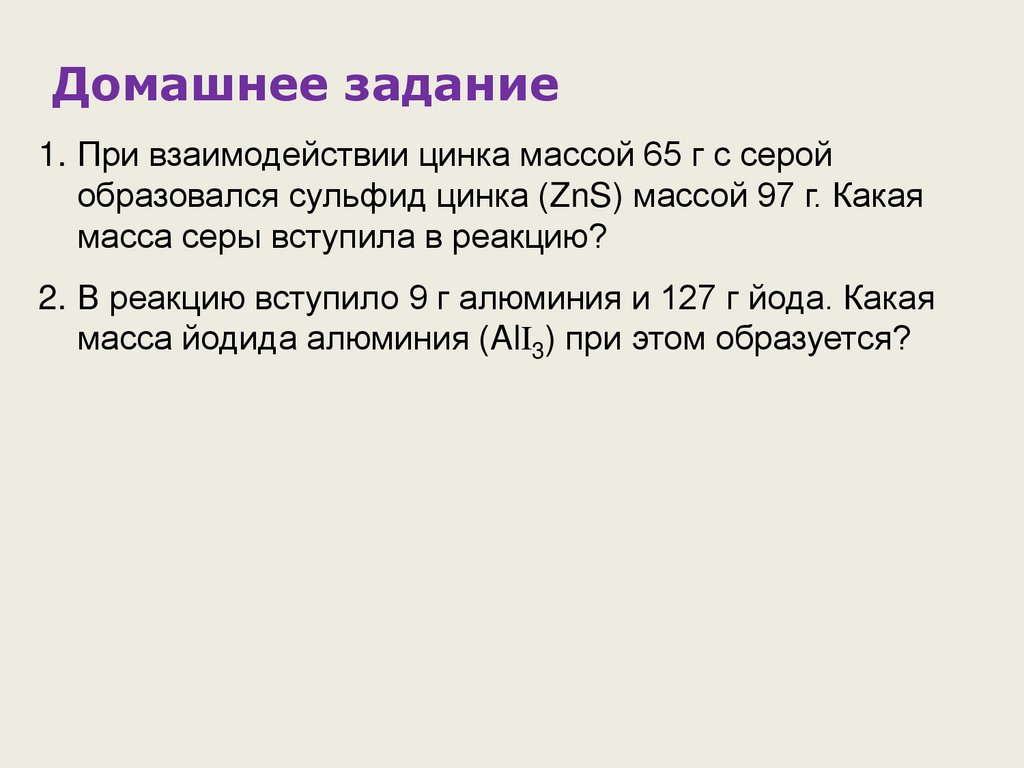 Домашнее задание1. При взаимодействии цинка массой 65 г с серой