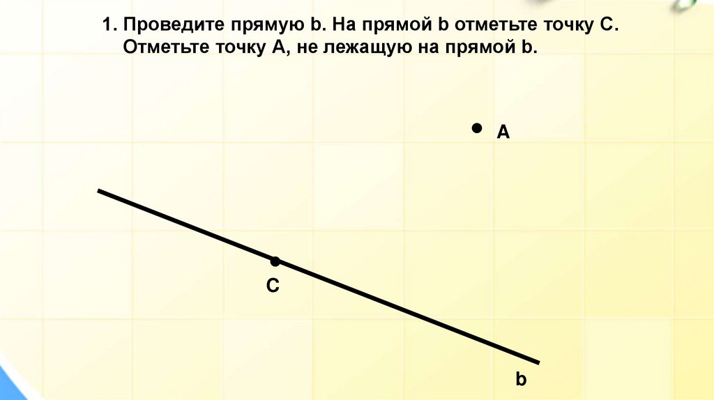 1. Проведите прямую b. На прямой b отметьте точку С.Отметьте точку А, не лежащую на прямой b.