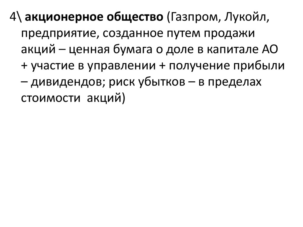 4\ акционерное общество (Газпром, Лукойл,предприятие, созданное путем продажи