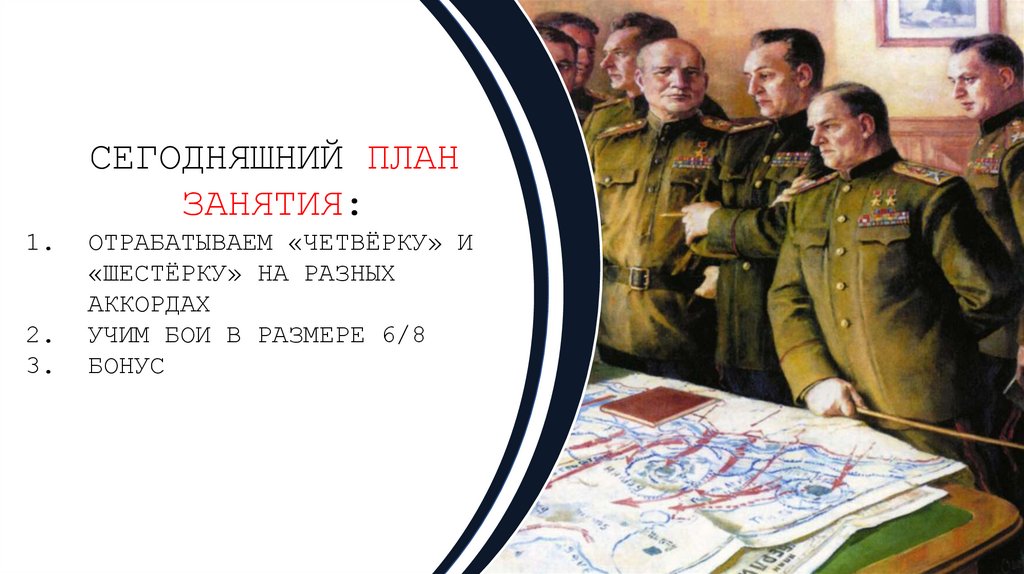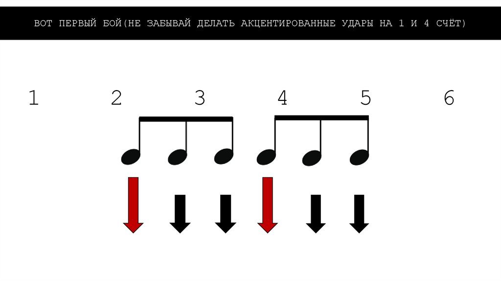 ВОТ ПЕРВЫЙ БОЙ(НЕ ЗАБЫВАЙ ДЕЛАТЬ АКЦЕНТИРОВАННЫЕ УДАРЫ НА 1 И 4 СЧЁТ)1