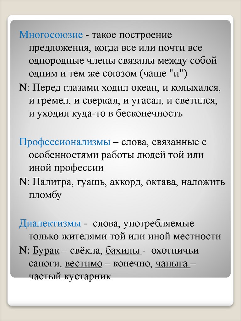 Многосоюзие - такое построениепредложения, когда все или почти все