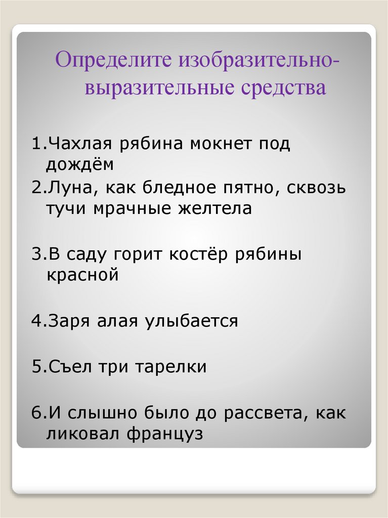 Определите изобразительновыразительные средства1.Чахлая рябина мокнет под