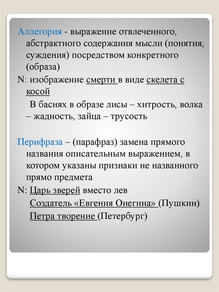 Аллегория - выражение отвлеченного,абстрактного содержания мысли (понятия,