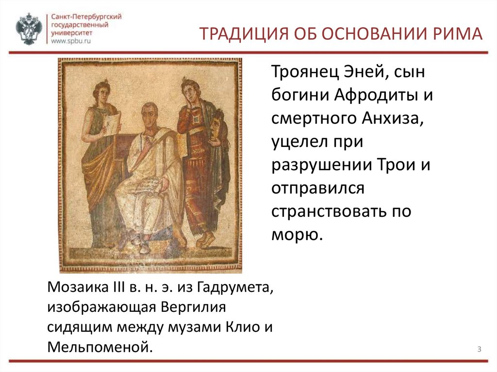 ТРАДИЦИЯ ОБ ОСНОВАНИИ РИМАТроянец Эней, сын