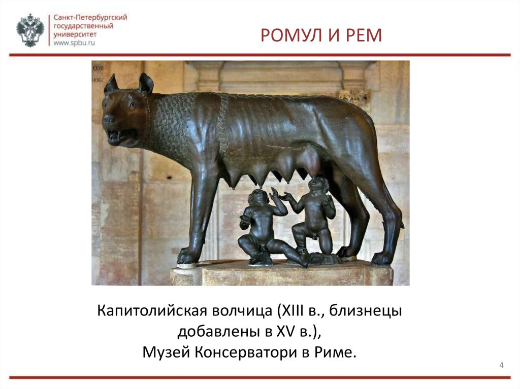 РОМУЛ И РЕМКапитолийская волчица (XIII в., близнецы