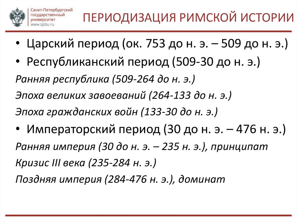 ПЕРИОДИЗАЦИЯ РИМСКОЙ ИСТОРИИ• Царский период (ок. 753 до н. э. – 509 до н. э.)