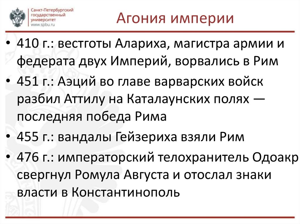 Агония империи• 410 г.: вестготы Алариха, магистра армии и