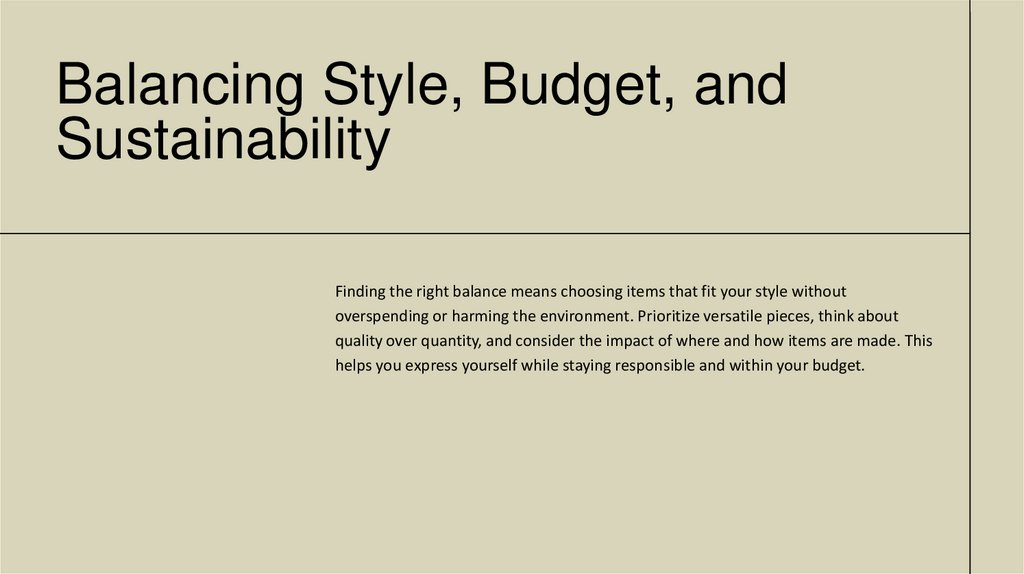 overspending or harming the environment. Prioritize versatile pieces, think about