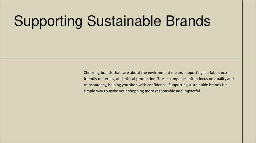 Supporting Sustainable BrandsChoosing brands that care about the environment means supporting fair labor, ecofriendly materials, and ethical production. These companies often focus on quality and