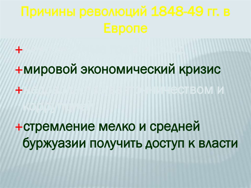 ПРИЧИНЫ РЕВОЛЮЦИЙ 1848-49 ГГ. ВЕВРОПЕ