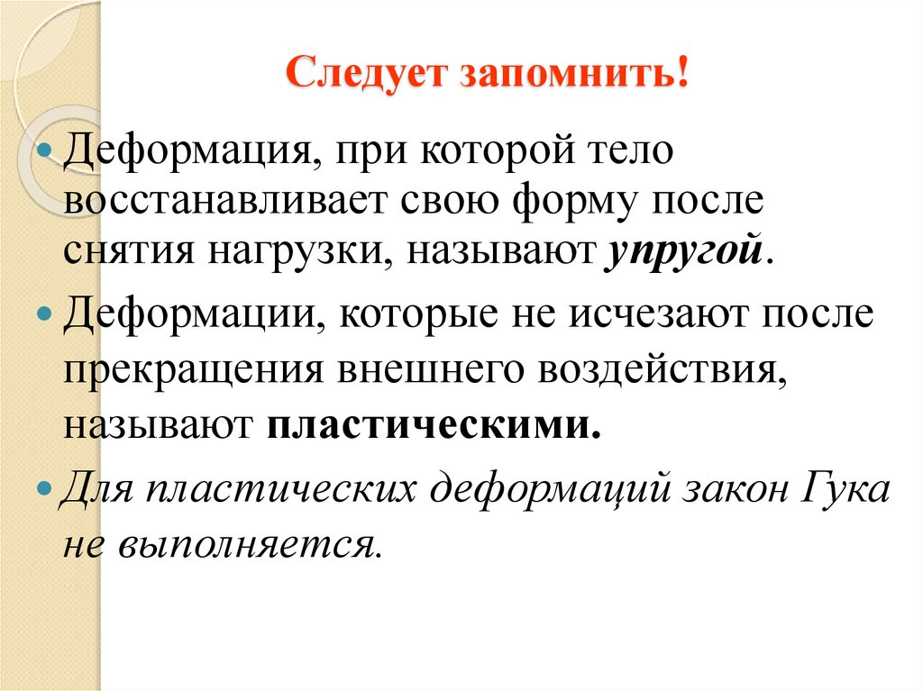 Сила, возникающая в теле в результатеего деформации и стремящаяся вернуть