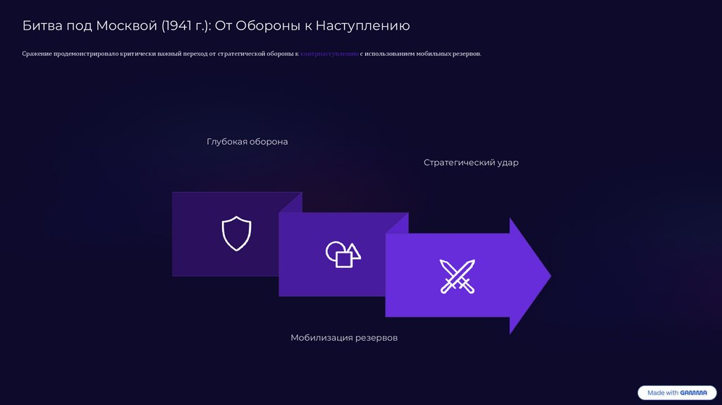 Битва под Москвой (1941 г.): От Обороны к НаступлениюСражение продемонстрировало критически важный переход от стратегической обороны к контрнаступлению с использованием мобильных резервов.
