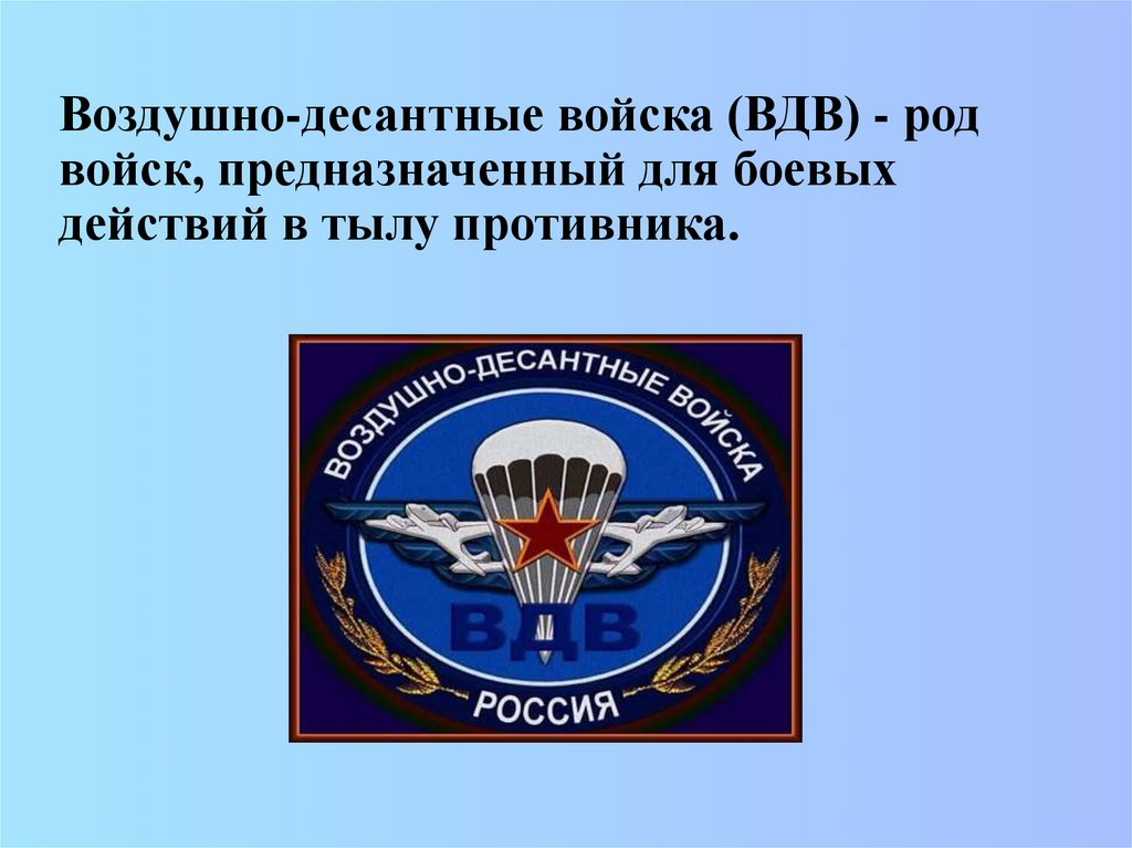 Воздушно-десантные войска (ВДВ) - родвойск, предназначенный для боевых