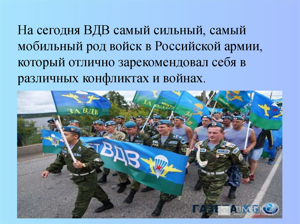 На сегодня ВДВ самый сильный, самыймобильный род войск в Российской армии,