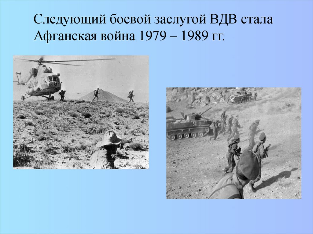 Следующий боевой заслугой ВДВ сталаАфганская война 1979 – 1989 гг.