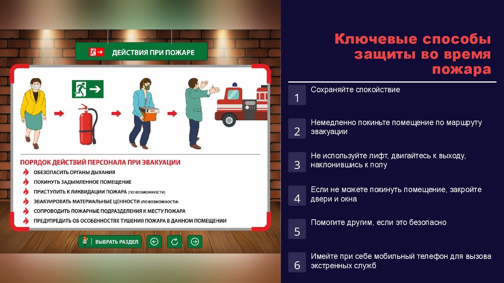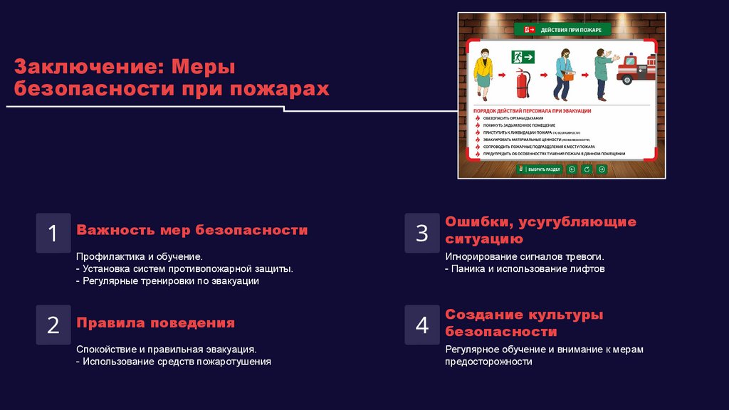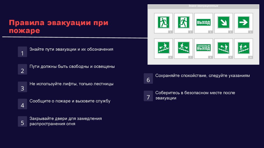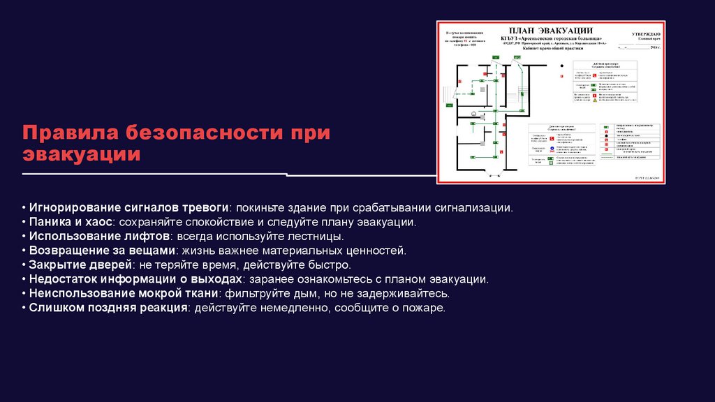 • Паника и хаос: сохраняйте спокойствие и следуйте плану эвакуации.