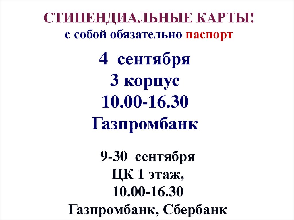 СТИПЕНДИАЛЬНЫЕ КАРТЫ!с собой обязательно паспорт