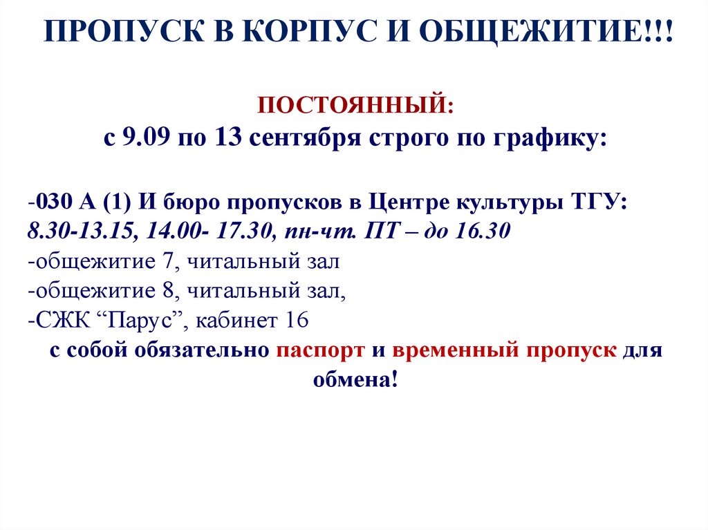 ПРОПУСК В КОРПУС И ОБЩЕЖИТИЕ!!!ПОСТОЯННЫЙ: