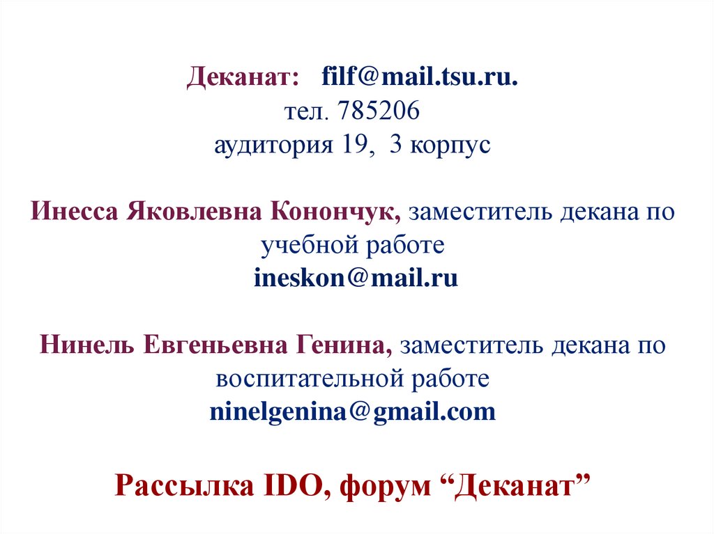 Деканат: filf@mail.tsu.ru.тел. 785206