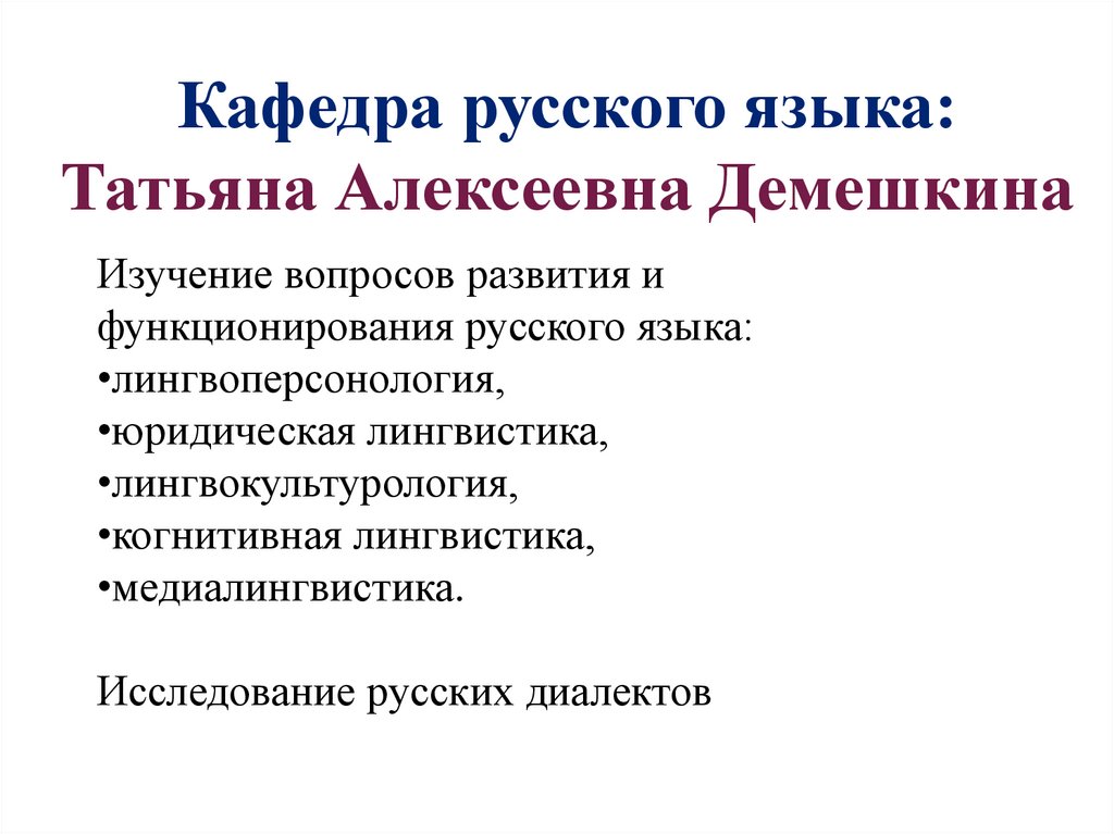 Кафедра русского языка:Татьяна Алексеевна Демешкина
