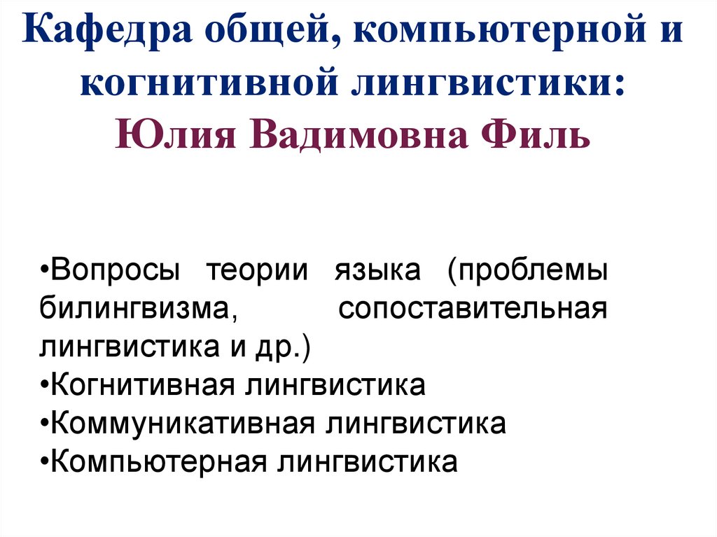 Кафедра общей, компьютерной икогнитивной лингвистики: