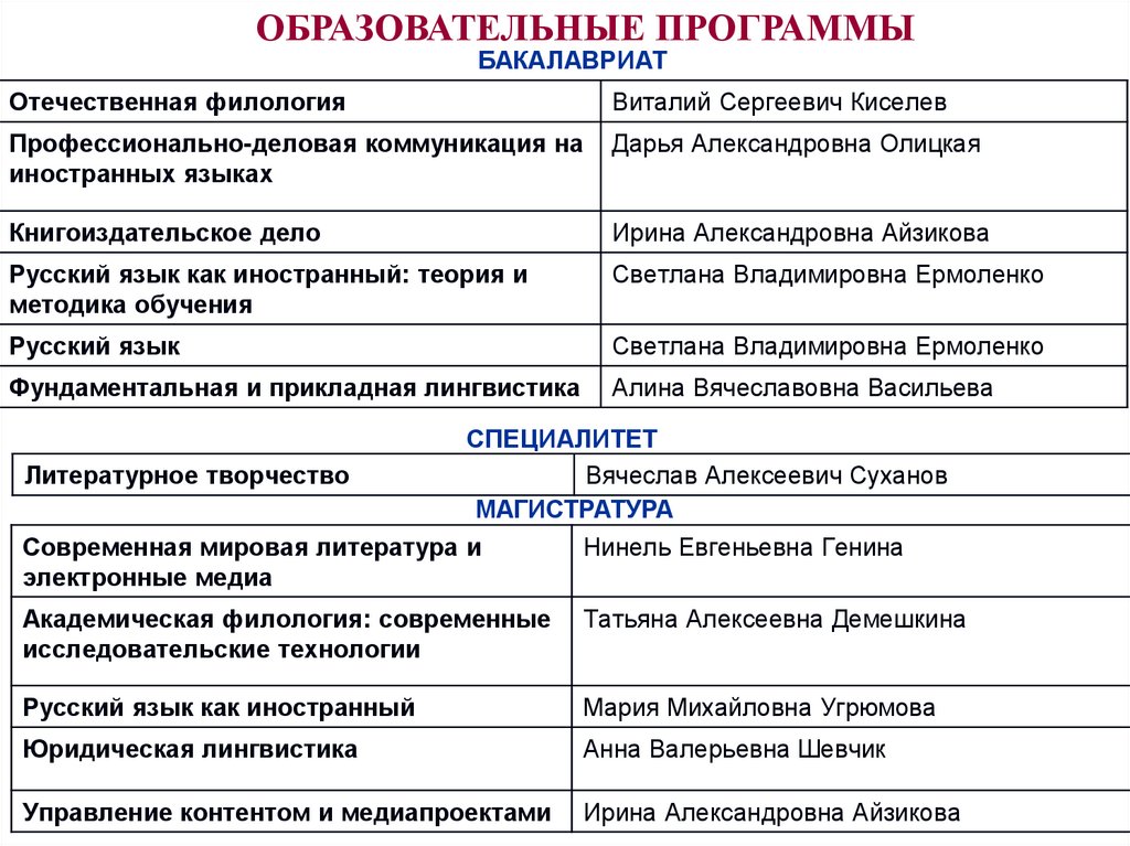 ОБРАЗОВАТЕЛЬНЫЕ ПРОГРАММЫБАКАЛАВРИАТ