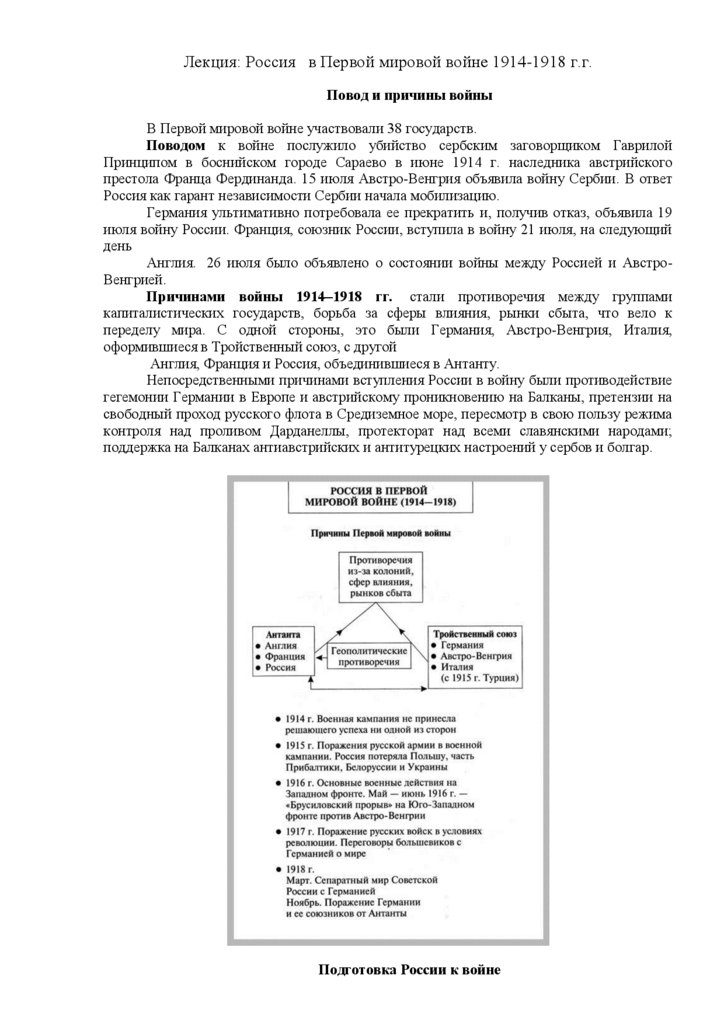 Лекция: Россия в Первой мировой войне 1914-1918 г.г.Повод и причины войны