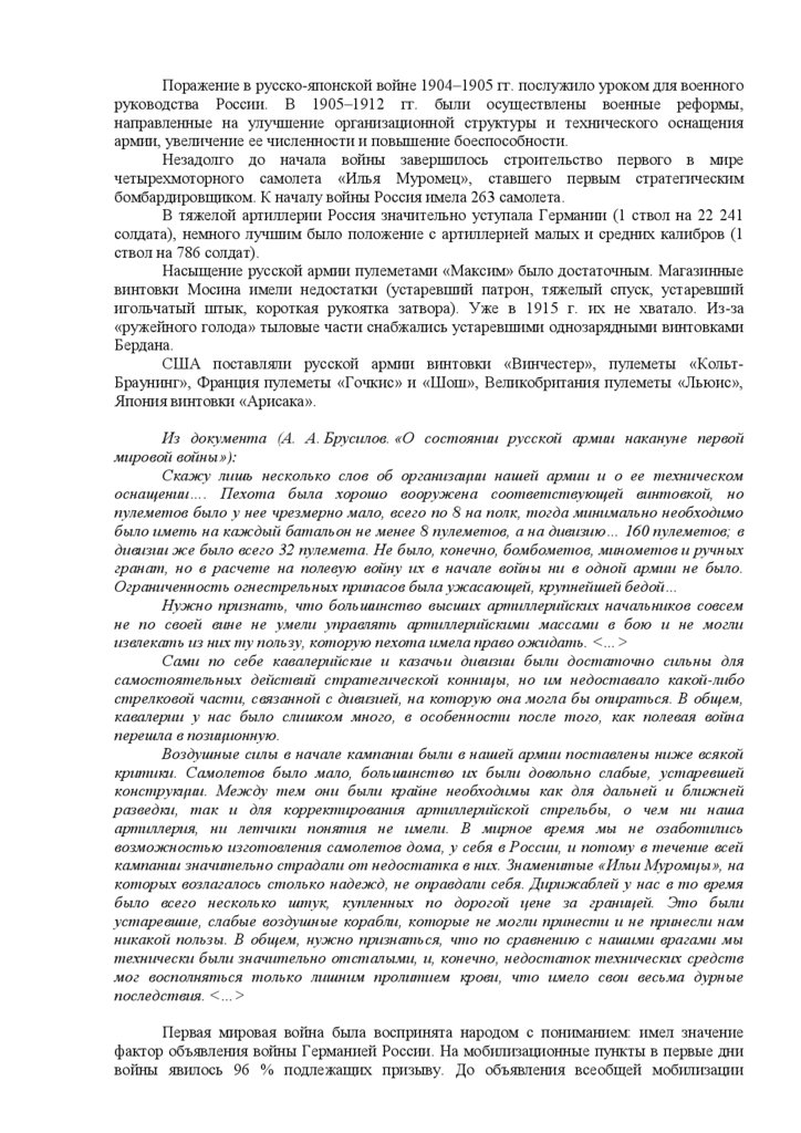 Из документа (А. А. Брусилов. «О состоянии русской армии накануне первой