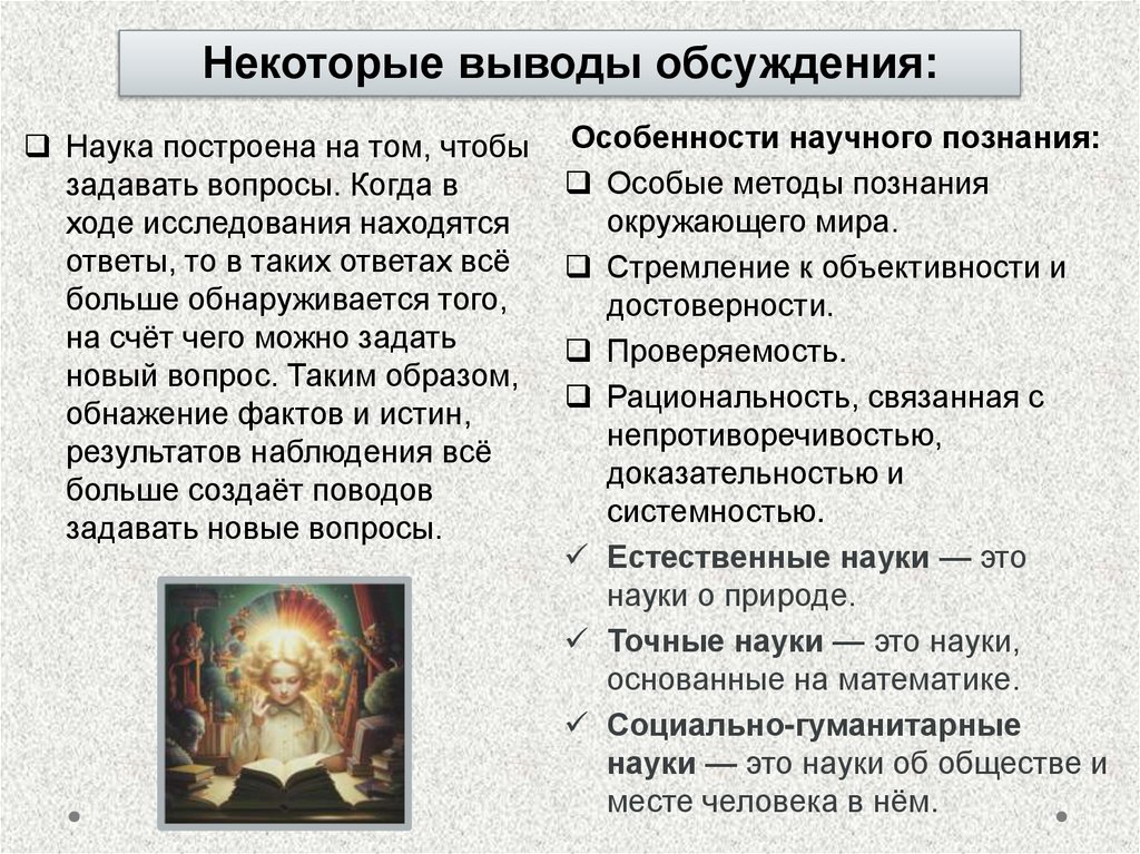 Некоторые выводы обсуждения:Наука построена на том, чтобы