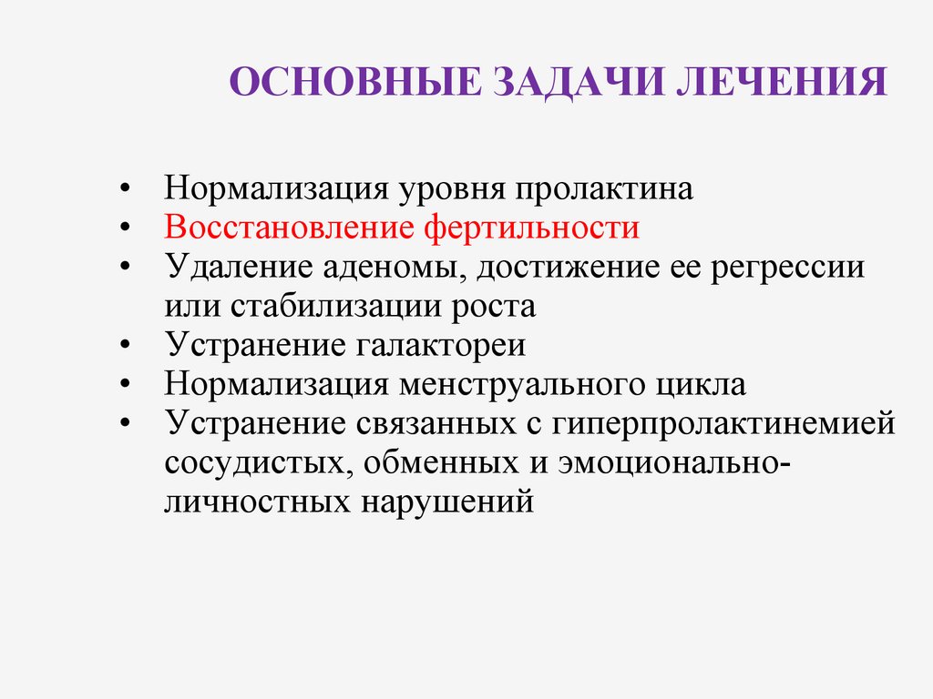 ОСНОВНЫЕ ЗАДАЧИ ЛЕЧЕНИЯ• Нормализация уровня пролактина