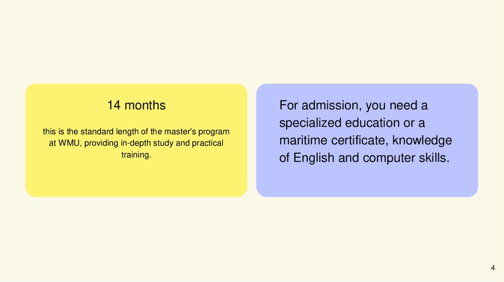 14 monthsthis is the standard length of the master's program