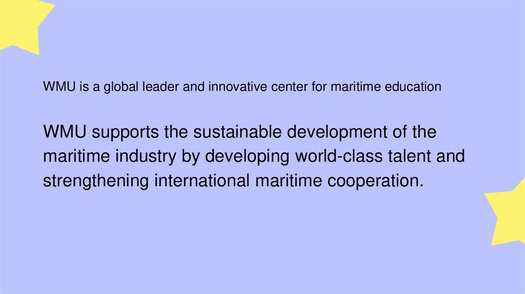 WMU is a global leader and innovative center for maritime educationWMU supports the sustainable development of the