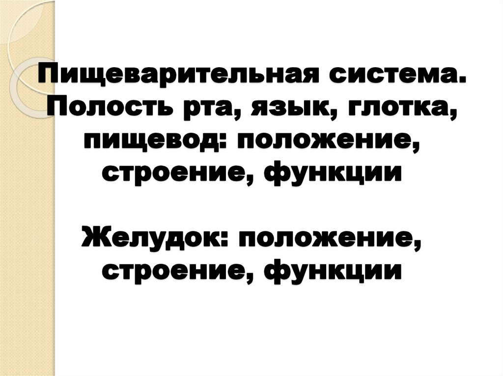 1. Пищеварительная система. Полость рта, язык, глотка, пищевод: положение, строение, функции Желудок: положение, строение, функции